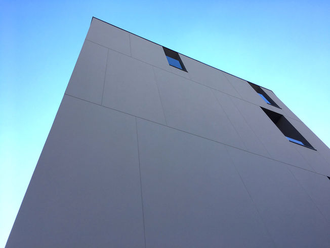 This apartment building in the area between the Swiss Ticino and Como Lake is an innovative building in its context. It features 5 apartments and a commercial floor. Conceptually is composed by two sculpted massive volumes floating on a transparent plinth. Attached to it, a private parking is covered by a folded concrete canopy. The folds give space to a roof garden, that potentially can be transformed into a swimming pool. The whole building is designed on a grid of 625 mm both in plan and elevation. This is visible also in the modular pattern of the facade surfaces. The building is one of the earliest almost zero energy buildings realized in Italy, with a ventilated facade and insulation for a total wall thickness of 625 mm. Energy wise the apartments feature radiating ceilings with a heat pump and solar panels.